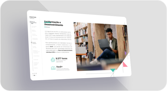 Relatório de 3.4 Formação e Sustentabilidade 2021 Desenvolvimento Mensagem GRI 404 do CEO Sobre o Ao longo do ano de 2021, os colaboradores da Po- Relatório sitivo integraram diversos treinamentos, que so- 1 Positivo maram 9.577 horas, representando uma média de Tecnologia quase 5 horas de treinamento/ano por colabora- 2 Governança dor, com base no quadro de colaboradores do ano. Corporativa 3 Capital Para aperfeiçoamento de habilidades técnicas e Humano comportamentais, a Positivo desenvolve o pro- 4 Cadeia grama Você+, que atende aos treinamentos sob de Valor demanda para suprir necessidades especí昀椀cas de 5 Governo e cada colaborador, e o Plano de Desenvolvimento sociedade civil Individual (PDI) de líderes e colaboradores. organizada 6 Comunidades 7 Ambiental 9.577 horas de treinamentos dos Sumário de colaboradores Conteúdo da GRI Créditos Você+ programa que atende aos treinamentos sob demanda 34