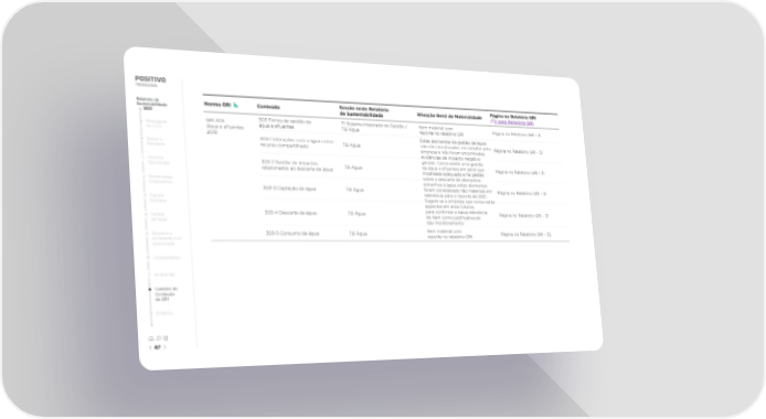 Relatório de Norma GRI Conteúdo Sessão neste Relatório Situação Geral de Materialidade Página no Relatório GRI Sustentabilidade de Sustentabilidade Ir para Relatório GRI 2021 GRI 303: 303 Forma de gestão da 7.1 Sistema Integrado de Gestão / Item material com Página no Relatório GRI - 31 Mensagem Água e e昀氀uentes água e e昀氀uentes 7.8 Água reporte no relatório GRI do CEO 2018 Estes elementos da gestão de água 303-1 Interações com a água como 7.8 Água não são monitorados em detalhe pela Página no Relatório GRI - 31 Sobre o recurso compartilhado empresa e não foram encontradas Relatório evidências de impacto negativo 1 Positivo gerado. Como existe uma gestão 303-2 Gestão de impactos 7.8 Água da água e e昀氀uentes em geral que Página no Relatório GRI - 31 Tecnologia relacionados ao descarte de água mostrasse adequada e há gestão sobre o descarte de elementos 2 Governança estranhos à água, estes elementos Corporativa 303-3 Captação de água 7.8 Água foram considerado não materiais em Página no Relatório GRI - 31 relevância para o reporte de 2021. 3 Capital Sugere-se a empresa que revise estes Humano aspectos em anos futuros, 303-4 Descarte de água 7.8 Água para con昀椀rmar a baixa relevância Página no Relatório GRI - 31 4 Cadeia do item como justi昀椀cativa do de Valor não monitoramento 5 Governo e 303-5 Consumo de água 7.8 Água Item material com Página no Relatório GRI - 32 sociedade civil reporte no relatório GRI organizada 6 Comunidades 7 Ambiental Sumário de Conteúdo da GRI Créditos 67