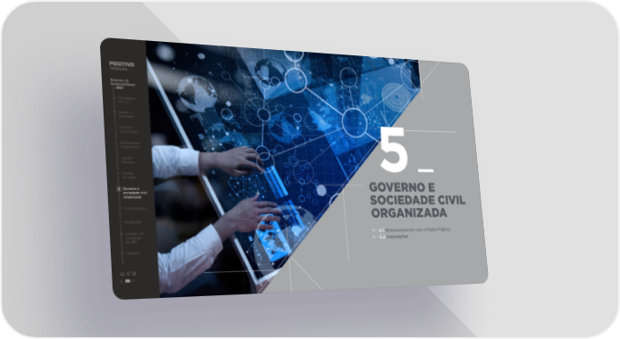 Relatório de Sustentabilidade 2021 Mensagem do CEO Sobre o Relatório 1 Positivo Tecnologia 2 Governança Corporativa 3 Capital Humano 5 4 Cadeia de Valor 5 Governo e GOVERNO E sociedade civil organizada SOCIEDADE CIVIL 6 Comunidades ORGANIZADA 7 Ambiental Sumário de 5.1 Relacionamento com o Poder Público Conteúdo da GRI 5.2 Associações Créditos 39