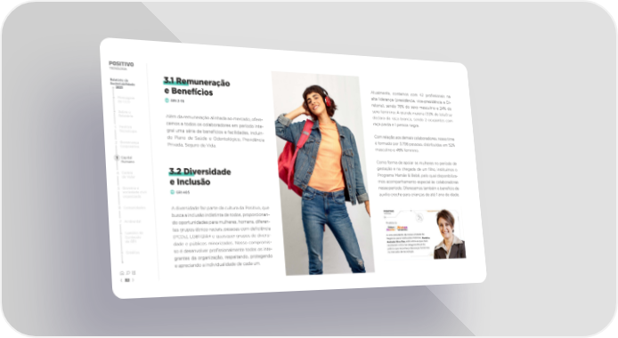 Relatório de 3.1 Remuneração Atualmente, contamos com 42 pro昀椀ssionais na Sustentabilidade alta liderança (presidência, vice-presidência e Di- 2021 e Benefícios retoria), sendo 76% do sexo masculino e 24% do Mensagem GRI 2-19 sexo feminino. A grande maioria (93% do total) se do CEO declara da raça branca, sendo 2 ocupantes com Sobre o Além da remuneração alinhada ao mercado, ofere- raça parda e 1 pessoa negra. Relatório cemos a todos os colaboradores em período inte- 1 Positivo gral uma série de benefícios e facilidades, incluin- Com relação aos demais colaboradores, nosso time Tecnologia do Plano de Saúde e Odontológico, Previdência é formado por 3.796 pessoas, distribuídas em 52% 2 Governança Privada, Seguro de Vida. masculino e 48% feminino. Corporativa 3 Capital Como forma de apoiar as mulheres no período de Humano gestação e na chegada de um 昀椀lho, instituímos o 4 Cadeia 3.2 Diversidade Programa Mamãe & Bebê, pelo qual disponibiliza- de Valor e Inclusão mos acompanhamento especial às colaboradoras 5 Governo e nesse período. Oferecemos também o benefício de sociedade civil GRI 405 auxílio creche para crianças de até 1 ano de idade. organizada 6 Comunidades A diversidade faz parte da cultura da Positivo, que busca a inclusão indistinta de todos, proporcionan- 7 Ambiental do oportunidades para mulheres, homens, diferen- Sumário de tes grupos étnico-raciais, pessoas com de昀椀ciência Conteúdo (PCDs), LGBTQIA+ e quaisquer grupos de diversi- da GRI dade e públicos minorizados. Nosso compromis- Créditos so é desenvolver pro昀椀ssionalmente todos os inte- grantes da organização, respeitando, protegendo e apreciando a individualidade de cada um. 32