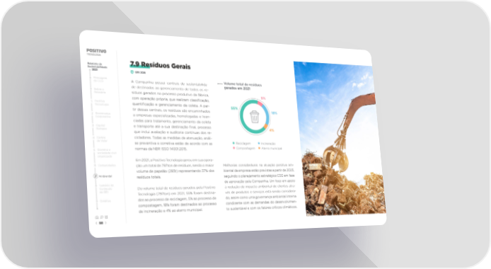 Relatório de 7.9 Resíduos Gerais Sustentabilidade 2021 GRI 306 Mensagem A Companhia possui centrais de sustentabilida- Volume total de resíduos do CEO gerados em 2021 de destinadas ao gerenciamento de todos os re- Sobre o síduos gerados no processo produtivo da fábrica, Relatório 5% com operação própria, que realizam classi昀椀cação, 1 Positivo quanti昀椀cação e gerenciamento da coleta. A par- Tecnologia 55% tir dessas centrais, os resíduos são encaminhados 18% 2 Governança a empresas especializadas, homologadas e licen- Corporativa ciadas para tratamento, gerenciamento da coleta 3 Capital e transporte até a sua destinação 昀椀nal, processo 4% Humano que inclui avaliação e auditoria contínuas dos re- 4 Cadeia cicladores. Todas as medidas de atenuação, análi- de Valor se preventiva e corretiva estão de acordo com as Reciclagem Incineração 5 Governo e normas da NBR ISSO 14001:2015. Compostagem Aterro municipal sociedade civil organizada Em 2021, a Positivo Tecnologia gerou em sua opera- 6 Comunidades ção um total de 797ton de resíduos, sendo o maior Melhorias consideráveis na atuação positiva am- volume de papelão (293t) representando 37% dos biental da empresa estão previstas a partir de 2023, 7 Ambiental resíduos totais. seguindo o planejamento estratégico ESG em fase Sumário de de aprovação pela Companhia. Um foco em apoio Conteúdo Do volume total de resíduos gerados pela Positivo à redução de impacto ambiental de clientes atra- da GRI Tecnologia (797ton) em 2021, 55% foram destina- vés de produtos e serviços está sendo considera- Créditos dos ao processo de reciclagem, 5% ao processo de do, assim como uma governança ambiental interna compostagem, 18% foram destinados ao processo condizente com as demandas do desenvolvimen- de incineração e 4% ao aterro municipal. to sustentável e com os fatores críticos climáticos. 58