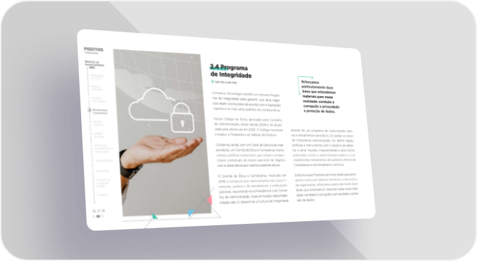 Relatório de 2.4 Programa Sustentabilidade 2021 de Integridade Reforçamos Mensagem GRI 405 a GRI 409 particularmente duas do CEO áreas que entendemos Sobre o A Positivo Tecnologia mantém um robusto Progra- materiais para nossa Relatório ma de Integridade para garantir que seus negó- realidade: combate à 1 Positivo cios sejam conduzidos de acordo com a legislação corrupção e privacidade Tecnologia vigente e os mais altos padrões de conduta ética. e proteção de dados. 2 Governança Corporativa Nosso Código de Ética, aprovado pelo Conselho 3 Capital de Administração, existe desde 2009 e foi atuali- Humano zado pela última vez em 2022. O Código incorpora através de um programa de comunicação inter- 4 Cadeia e traduz o Propósito e os Valores da Positivo. na e treinamentos periódicos, (ii) avaliar os riscos de Valor de Compliance anticorrupção, (iii) de昀椀nir regras, 5 Governo e Contamos, ainda, com um Canal de Denúncias inde- políticas e instrumentos com o objetivo de detec- sociedade civil pendente, um Comitê de Ética e Compliance, treina- tar e sanar fraudes, irregularidades e atos ilícitos organizada mentos, políticas e processos, que incluem compro- praticados contra a administração pública e (iv) 6 Comunidades missos contratuais de nossos parceiros de negócio implementar mecanismos de auditoria interna de com a observância aos mesmos padrões éticos. Compliance e monitoramento contínuo. 7 Ambiental Sumário de O Comitê de Ética e Compliance, instituído em Embora nosso Programa de Integridade seja abran- Conteúdo 2018, é composto por representantes das áreas 昀椀- gente e tenha por objetivo fomentar a cultura ética da GRI nanceira, jurídica e de atendimento a instituições da organização, reforçamos particularmente duas Créditos públicas, reportando-se à Presidência e ao Conse- áreas que entendemos materiais para nossa reali- lho de Administração. Suas principais responsabi- dade: combate à corrupção e privacidade e prote- lidades são (i) disseminar a Cultura de Integridade ção de dados. 25