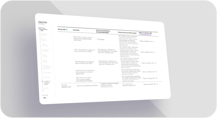 Relatório de Norma GRI Conteúdo Sessão neste Relatório Situação Geral de Materialidade Página no Relatório GRI Sustentabilidade de Sustentabilidade Ir para Relatório GRI 2021 Item material, porém o reporte GRI Mensagem encontra-se incompleto ou com do CEO 305-3 Outras emissões indiretas oportunidades de melhoria, devido (Escopo 3) de gases de efeito 7.6 Emissôes a falta de dados completos de Página no Relatório GRI - 34 Sobre o estufa (GEE) monitoramento pela empresa em Relatório 2021. Item deve ser aprimorado para reportes futuros 1 Positivo Item material, porém o reporte GRI Tecnologia encontra-se incompleto ou com 305-4 Intensidade de emissões de Não destacado no Relatório de oportunidades de melhoria, devido 2 Governança gases de efeito estufa (GEE) Sustentabilidade 2021. Informação a falta de dados completos de Página no Relatório GRI - 35 Corporativa disponível no Relatório GRI monitoramento pela empresa em 2021. Item deve ser aprimorado para 3 Capital reportes futuros Humano Item material, porém o reporte GRI encontra-se incompleto ou com 4 Cadeia 305-5 Redução de emissões de Não destacado no Relatório de oportunidades de melhoria, devido de Valor gases de efeito estufa (GEE) Sustentabilidade 2021. Informação a falta de dados completos de Página no Relatório GRI - 35 disponível no Relatório GRI monitoramento pela empresa em 5 Governo e 2021. Item deve ser aprimorado para sociedade civil reportes futuros organizada Item considerado não material por 305-6 Emissões de substâncias não haverem evidências de impacto 6 Comunidades destruidoreas da camada de - neste ponto pelos processos e Página no Relatório GRI - 35 ozônio (SDO) produtos da empresa 7 Ambiental 305-7 Emissões de NOX, Item considerado não material por SOX e outras emissões - não haverem evidências de impacto Página no Relatório GRI - 35 Sumário de atmosféricas signi昀椀cativas neste ponto pelos processos e Conteúdo produtos da empresa da GRI 7.1 Sistema Integrado de Gestão / GRI 306: 306 Forma de gestão dos Resíduos 7.9 Resíduos Gerais / Item material com Página no Relatório GRI - 36 Créditos Resíduos 2020 7.4 Economia Circular reporte no relatório GRI 69