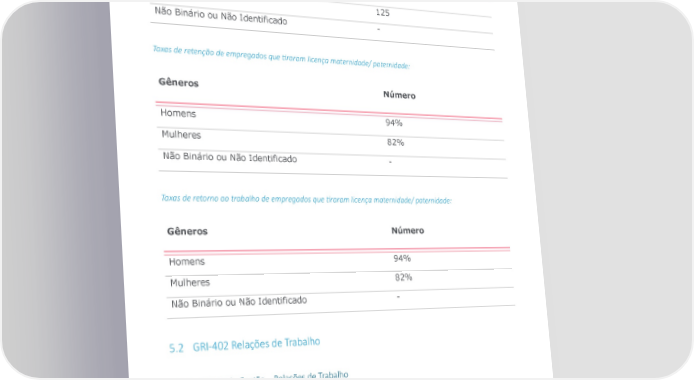 Número total de empregados que retornaram ao trabalho depois do término da licença maternidade/ paternidade e con-nuaram empregados doze meses após seu retorno ao trabalho: Gêneros Número Homens 32 Mulheres 125 Não Binário ou Não Identificado - Taxas de retenção de empregados que -raram licença maternidade/ paternidade: Gêneros Número Homens 94% Mulheres 82% Não Binário ou Não Identificado - Taxas de retorno ao trabalho de empregados que -raram licença maternidade/ paternidade: Gêneros Número Homens 94% Mulheres 82% Não Binário ou Não Identificado - 5.2 GRI-402 Relações de Trabalho 5.2.1 Forma de Gestão – Relações de Trabalho Toda e qualquer mudança operacional significativa na Positivo Tecnologia S.A. é informada aos empregados e seus representantes٫ bem como às autoridades governamentais competentes com a maior antecedência possível respeitando-se os prazos previstos em legislação e acordos/convenções coletivas. Por exemplo, mudanças relacionadas a escalas de trabalho são informadas com prazo mínimo de 15 dias corridos (10 dias úteis) conforme previsto em Convenção Coletiva de Trabalho (Positivo Curitiba). Tais comunicações são realizadas via e-mail reuniões e através dos murais informativos. Relatório Referenciado GRI | 2022 60