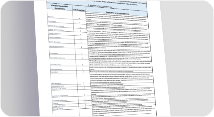 2.1.1 Levantamento de stakeholders: 2.2 GRI-3-2 Lista de temas materiais A lista de tópicos materiais foi priorizada graficamente abaixo e deverá ser revista ao fim do processo de definição das metas estratégicas e quando consultas mais específicas e diretas forem feitas junto aos stakeholders. Relatório Referenciado GRI | 2022 26