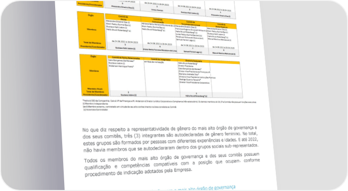 1.9.1 Abaixo o detalhamento da composição destes órgãos: No que diz respeito a representatividade de gênero do mais alto órgão de governança e dos seus comitês, três (3) integrantes são autodeclaradas de gênero feminino. No total, estes grupos são formados por pessoas com diferentes experiências e idades. E até 2022, não havia membros que se autodeclararam dentro dos grupos sociais sub-representados. Todos os membros do mais alto órgão de governança e dos seus comitês possuem qualificação e competências compatíveis com a posição que ocupam٫ conforme procedimento de indicação adotados pela Empresa. 1.10 GRI-2-10 Nomeação e seleção para o mais alto órgão de governança A Positivo Tecnologia S.A. possui uma Política de Indicação de Membros da Administração aprovada pelo Conselho de Administração em 25/04/2022 e disponível no site de Relacionamento com Investidores da Empresa. https://ri.positivotecnologia.com.br/governanca-corporativa/estatuto-politicas-e- regimentos/ Relatório Referenciado GRI | 2022 10