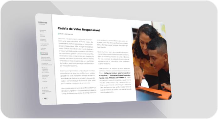 Cadeia de Valor Responsável Mensagem do CEO ▌ GRI 204 | 308 | 408 | 414 Sobre o Relatório Prezamos não apenas pela integridade, mas tam- nerais podem ser comercializados por países ad- A Positivo bém pela sustentabilidade de nossa cadeia de jacentes, como República da África Central, Sudão Tecnologia A Jornada ESG fornecimento. Somos signatários da Aliança Em- do Sul, Zâmbia, Angola, Tanzânia, Burundi, Ruan- da Positivo presarial Responsável (RBA, na sigla em inglês), a da e Uganda. Cultura e maior coalizão de indústria do mundo dedicada Pessoas à responsabilidade social corporativa nas cadeias Esses insumos entram na composição de pratica- Governança de suprimentos globais. Como membros da RBA, mente todos os produtos eletrônicos de consumo, Sustentável declaramos nosso compromisso em observar os além de inúmeros produtos de outras indústrias. Educação para padrões de direitos humanos e práticas laborais, Por isso, o controle da cadeia de fornecimento de Empoderamento e Inclusão Digital ambientais e éticas estabelecidas em seu Código equipamentos de informática é tão necessário Jornada da de Conduta, bem como em exigir sua observância quanto desa昀椀ador. Economia Circular por nossos fornecedores. E昀椀ciência Para garantir que nenhum produto adquirido Energética e Redução Estamos comprometidos a não adquirir minerais contenha minerais procedentes de área de con- de Emissões provenientes de áreas de con昀氀ito, isto é, regiões 昀氀ito, o Código de Conduta para Fornecedores Sumário de geográ昀椀cas onde há con昀氀ito armado e histórico e Parceiros e a Política de Minerais Provenien- Conteúdo da GRI de violação de direitos humanos, em que a explo- tes de Áreas Afetadas por Con昀氀itos da Positi- Créditos ração e comercialização de minerais pode servir vo orientam nossos fornecedores a assumirem o para 昀椀nanciar a aquisição de armamento. mesmo compromisso, cujo cumprimento veri- 昀椀camos por meio de autoavaliação e auditorias. São considerados minerais de con昀氀ito o estanho, o Caso veri昀椀quemos que um fornecedor tenha ad- Relatório de tântalo, o tungsténio e o ouro extraídos no leste do quirido minerais de con昀氀ito, nos reservamos o di- Sustentabilidade 2022 Congo. Embora provenientes do Congo, esses mi- reito de substituí-lo. 46