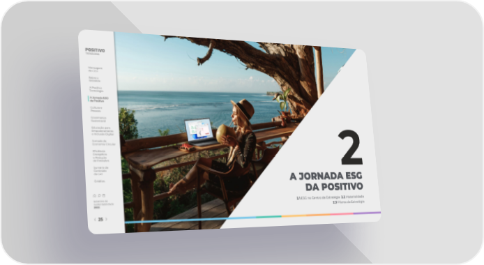 Mensagem do CEO Sobre o Relatório A Positivo Tecnologia A Jornada ESG da Positivo Cultura e Pessoas Governança Sustentável Educação para Empoderamento e Inclusão Digital Jornada da Economia Circular E昀椀ciência Energética e Redução de Emissões 2 Sumário de Conteúdo da GRI Créditos A JORNADA ESG DA POSITIVO Relatório de 2.1 ESG no Centro da Estratégia 2.2 Materialidade Sustentabilidade 2022 2.3 Pilares da Estratégia 25