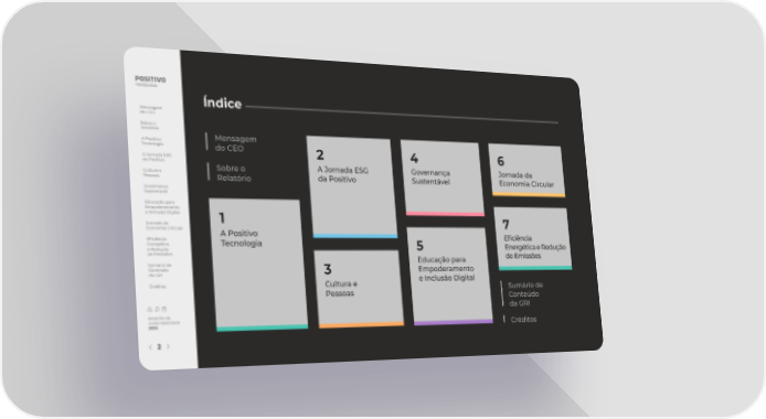 Índice Mensagem do CEO Sobre o Relatório A Positivo Mensagem Tecnologia do CEO 2 4 6 A Jornada ESG da Positivo Sobre o A Jornada ESG Governança Jornada da Cultura e Pessoas Relatório da Positivo Sustentável Economia Circular Governança Sustentável Educação para Empoderamento e Inclusão Digital 1 Jornada da 7 Economia Circular A Positivo E昀椀ciência E昀椀ciência Energética Tecnologia Energética e Redução e Redução 5 de Emissões Educação para de Emissões Sumário de Conteúdo 3 Empoderamento da GRI e Inclusão Digital Créditos Cultura e Sumário de Pessoas Conteúdo da GRI Relatório de Sustentabilidade 2022 Créditos 2