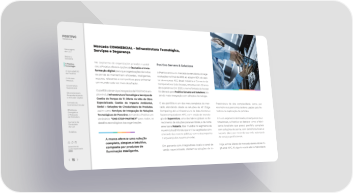 Mercado COMMERCIAL – Infraestrutura Tecnológica, Mensagem Serviços e Segurança do CEO Sobre o Relatório No segmento de organizações privadas e públi- Positivo Servers & Solutions A Positivo cas, a Positivo oferece opções de inclusão e trans- Tecnologia A Jornada ESG formação digital para que organizações de todos A Positivo entrou no mercado de servidores, storage da Positivo os portes se mantenham e昀椀cientes, inteligentes, e soluções no 昀椀nal de 2018, ao adquirir 80% do capi- Cultura e seguras, relevantes e competitivas para enfrentar tal da empresa ACC Brasil Indústria e Comercio de Pessoas um mundo cada vez mais desa昀椀ador. Computadores Ltda (Accept), empresa com 30 anos Governança de experiência. Em 2020, o nome fantasia da Accept Sustentável O portfólio de serviços integrados da POSITIVO é am- foi alterado para Positivo Servers and Solutions, tra- Educação para plo e inclui Infraestrutura Tecnológica, Serviços de zendo maior integração com a Positivo Tecnologia. Empoderamento e Inclusão Digital Gestão de Parque de TI, Oferta de Mão de Obra Jornada da Especializada, Gestão de Impacto Ambiental, O seu portfólio é um dos mais completos do mer- fraestrutura de alta complexidade, como, por Economia Circular Social e Soluções de Circularidade de Produtos, cado, atendendo desde as soluções de IoT /Edge exemplo, os supercomputadores usados pela Pe- E昀椀ciência assim como Serviços de Integração de Soluções Computing até a infraestrutura de Data Centers e trobras na exploração de petróleo. Energética e Redução Tecnológicas de Parceiros, tornando a Positivo um Supercomputadores HPC, com cessão de tecnolo- de Emissões verdadeiro “ONE-STOP-PARTNER” para todos os gia da Supermicro, uma das líderes globais no for- Em um segmento dominado por empresas mul- Sumário de desa昀椀os tecnológicos das organizações. necimento de soluções para servidores, e da norte tinacionais, a Positivo se destaca como a fabri- Conteúdo da GRI americana Nutanix, líder mundial no segmento de cante brasileira que possui portfólio completo cloud) híbrida, que uni昀椀ca a agilidade e sim- Créditos nuvem ( com soluções de ponta, com benefícios locais e plicidade das nuvens públicas com o desempenho suporte 24x7, por meio da sua rede autorizada A marca oferece uma solução e segurança das nuvens privadas. de serviços pro昀椀ssionais. completa, simples e intuitiva, Relatório de composta por produtos de Em parceria com integradores locais e canal de Hoje, somos líderes de mercado de servidores hi- Sustentabilidade 2022 Iluminação Inteligente. venda especializado, ofertamos soluções de in- gh-end: HPC, AI, algoritmos de alta complexidade. 15